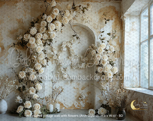 Textured vintage wall with flowers (Arch Style 2) (BD)