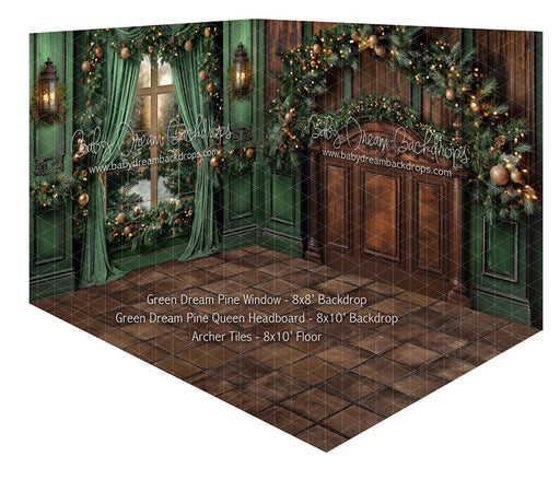 Room Green Dream Pine Window + Green Dream Pine Queen Headboard + Archer Tiles