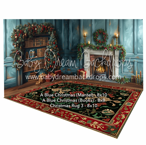 Room A Blue Christmas (Mantel) + Room A Blue Christmas (Books) + Christmas Rug (Green)