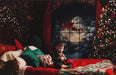 Northern Nook Red Queen Headboard and Northern Nook Window Santa Tree Fabric Room