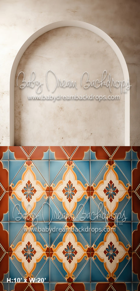 Beige Arch Wall 3 Flipped, Blue Spanish Tile Sweep (MD)